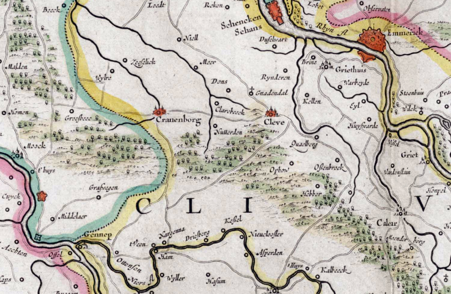 Deel van kaart land van Kleef 1663